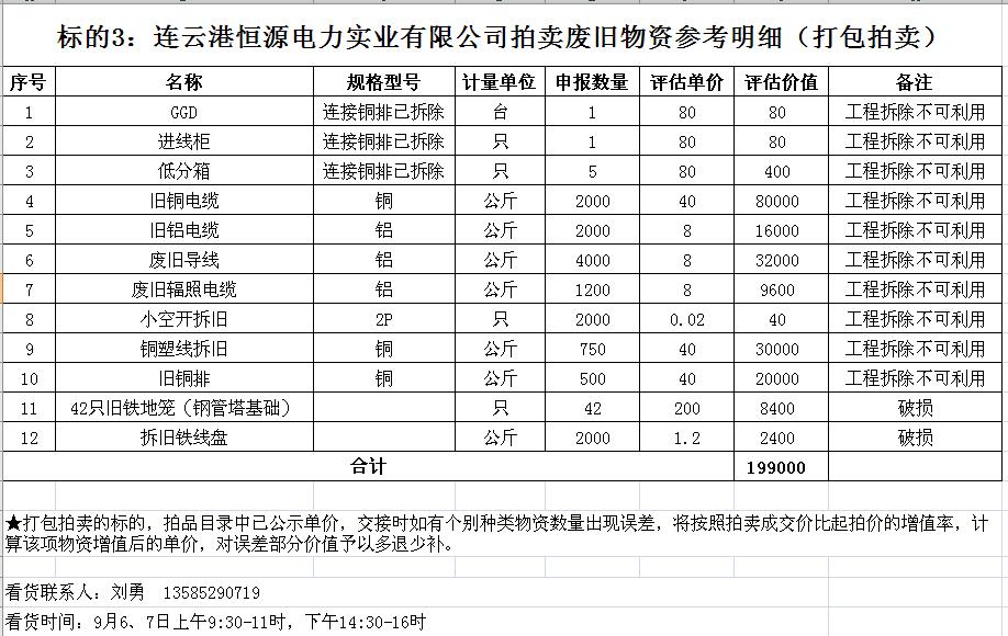 關(guān)注微信公眾號受連云港齊天實業(yè)有限公司委托,我公司將通過中國拍賣行業(yè)協(xié)會網(wǎng)絡(luò)拍賣平臺以網(wǎng)絡(luò)競價的方式公開拍賣以下單位廢舊物資: