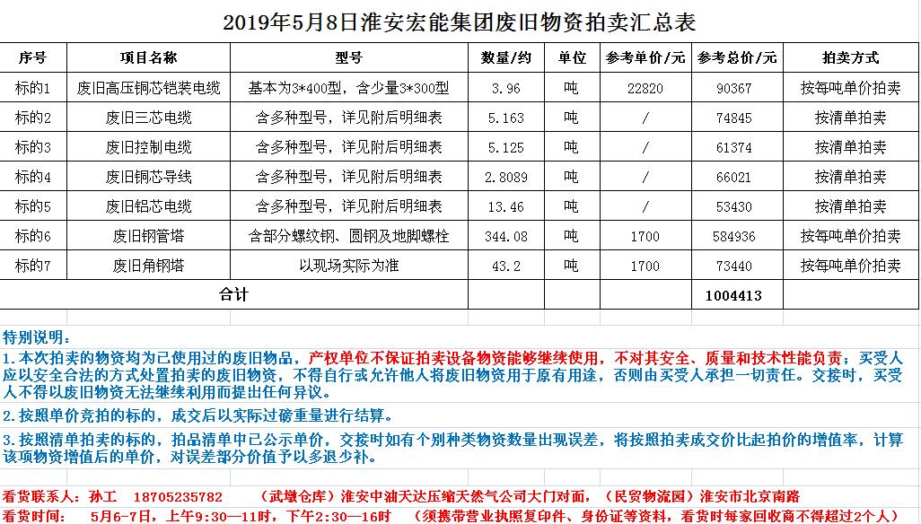 關(guān)注微信公眾號(hào)受淮安宏能集團(tuán)有限公司委托,我公司將通過中國拍賣行業(yè)協(xié)會(huì)網(wǎng)絡(luò)拍賣平臺(tái)以網(wǎng)絡(luò)競(jìng)價(jià)的方式公開拍賣以下廢舊物資,主要包括:高壓銅芯電纜、控制電纜、銅芯導(dǎo)線、鋁芯電纜、角鋼塔、鋼管塔等。