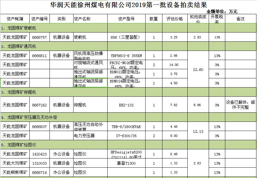 關注微信公眾號受委托,我公司將通過中國拍賣行業(yè)協(xié)會網絡拍賣平臺以網絡競價的方式公開拍賣二手煤礦機械設備一批。