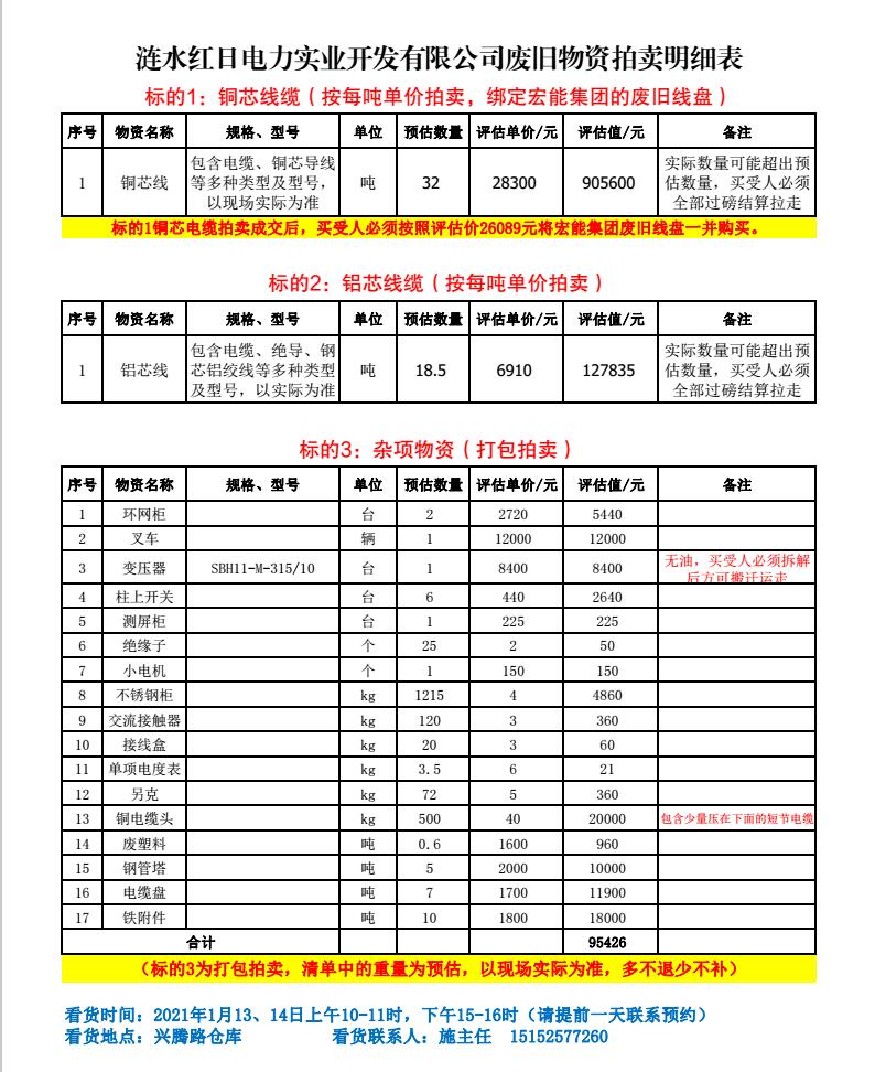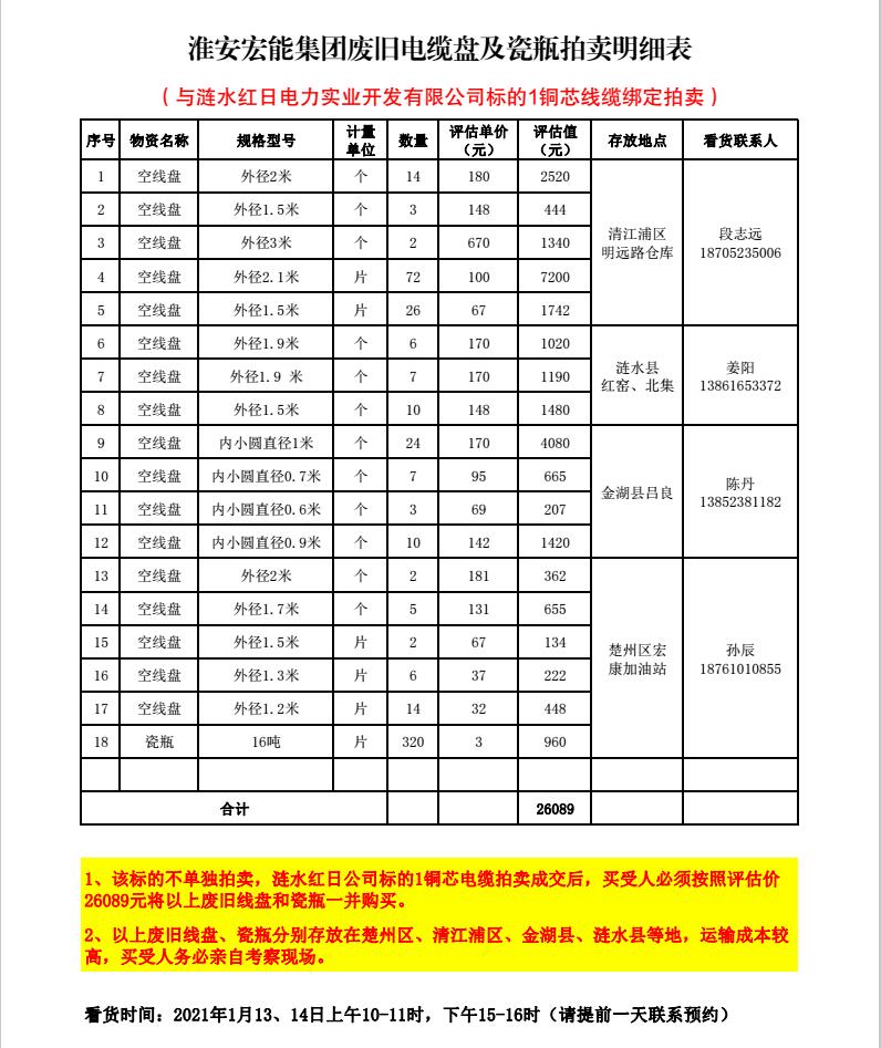 關(guān)注微信公眾號受委托,我公司將通過中拍平臺以網(wǎng)絡競價的方式公開拍賣以下單位廢舊電力物資。主要包含:廢舊電纜盤、銅芯電纜、鋁芯電纜、鋼管塔、鐵附件、開關(guān)柜、變壓器、雜項物資等。