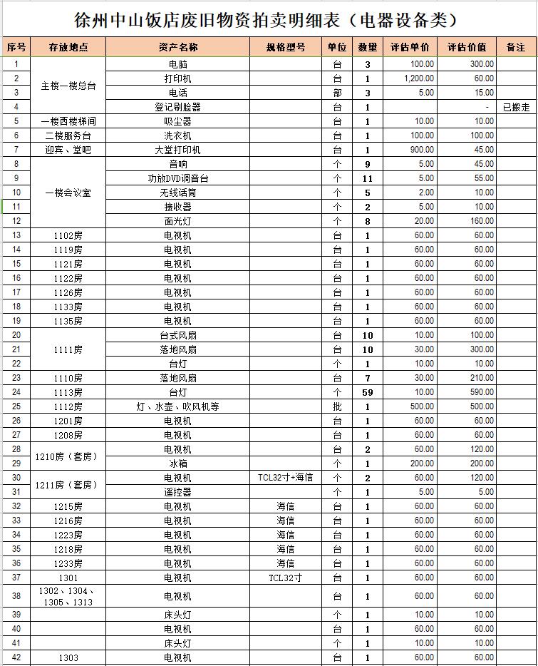 關(guān)注微信公眾號(hào)我公司受委托,定于2021年1月18日10時(shí)在中拍平臺(tái)通過(guò)網(wǎng)絡(luò)競(jìng)拍方式公開(kāi)拍賣(mài):徐州市中山飯店、漢元商貿(mào)公司廢舊物資一批,主要包括廢舊電器設(shè)備、酒店用具等。
