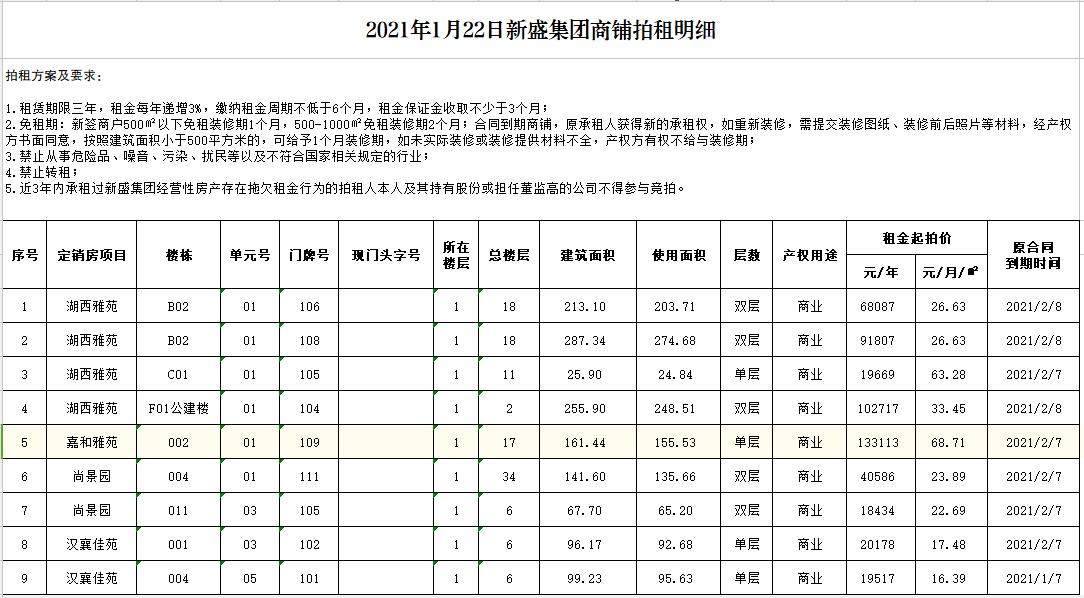 原則上原承租人享有同等價格的優(yōu)先權。近3年內(nèi)曾經(jīng)違約的競買人,承租過新盛集團經(jīng)營性房產(chǎn),存在拖欠租金及轉租行為的承租人及其持有股份或擔任董監(jiān)高的公司不得參與競拍。